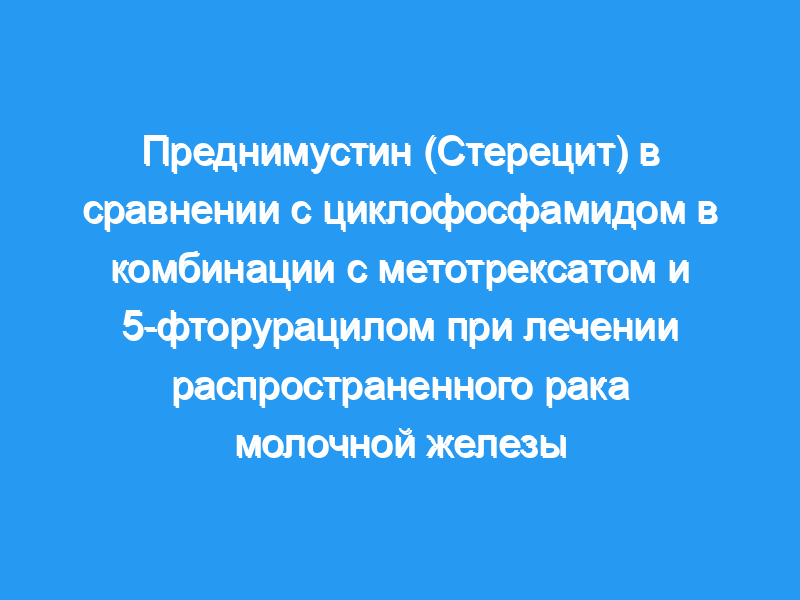 153 женщины с прогрессирующим раком молочной железы были случайным образом распределены для лечения SMF [преднимустин (Стерецит) + метотрексат + 5-фторурацил, 83 пациента] или CMF (циклофосфамид+метотрексат+5-фторурацил, 70 пациентов). Преднимустин вводили перорально по 100 мг/м2 ежедневно в течение 5 дней, а циклофосфамид вводили перорально по 100 мг/м2 в течение 14 дней, каждый, каждые 4 недели.