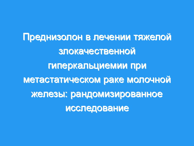 Чтобы определить влияние преднизолона на тяжелую гиперкальциемию у женщин с метастатическим раком молочной железы, 30 пациенток с содержанием ионизированного кальция в сыворотке крови выше 1,60 ммоль/л-1 (референтный диапазон 1,15-1,35 ммоль/л-1) вошли в рандомизированное исследование tria.