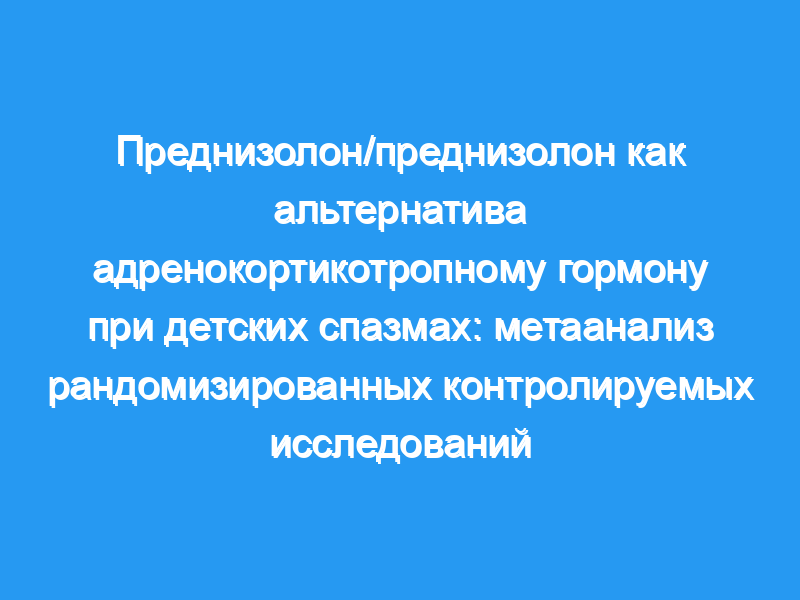 В мета-анализ были включены шесть РКИ (616 участников). По сравнению с преднизолоном/преднизоном, АКТГ/тетракозактид не превосходил по прекращению спазмов на 14-й день (относительный риск 1,19, 95% доверительный интервал [ДИ] 0,74-1,92), 42-й день (относительный риск 1,02, 95% ДИ 0,63-1,65) и разрешению гипсаритмии на электроэнцефалограмме (относительный риск 1,14, 95% ДИ 0,71-1,81), частота общих побочных реакций, вызванных АКТГ/тетракозактидом, была не ниже, чем у преднизолона/преднизолона, в отношении раздражительности (относительный риск 0,79, 95% ДИ 0,57-1,10), повышенного аппетита (относительный риск 0,78, 95% ДИ 0,57-1,08), увеличение веса (относительный риск 0,86, 95% ДИ 0,56-1,32) и желудочно-кишечные расстройства (относительный риск 0,60, 95% ДИ 0,35-1,02), хотя это казалось менее частым. Интерпретация: Преднизолон /преднизон вызывает аналогичный электроклинический ответ, как и АКТГ при детских спазмах, что указывает на то, что он может быть альтернативой АКТГ для лечения детских спазмов. Что добавляет эта статья, Преднизолон / преднизолон так же эффективен, как адренокортикотропный гормон (АКТГ) при электроклинической реакции на детские спазмы. Преднизолон/преднизолон и АКТГ вызывают сходные и переносимые побочные эффекты, частота которых сопоставима. Высокие дозы преднизолона/преднизолона могут быть предпочтительнее низких доз для достижения избавления от спазмов.
