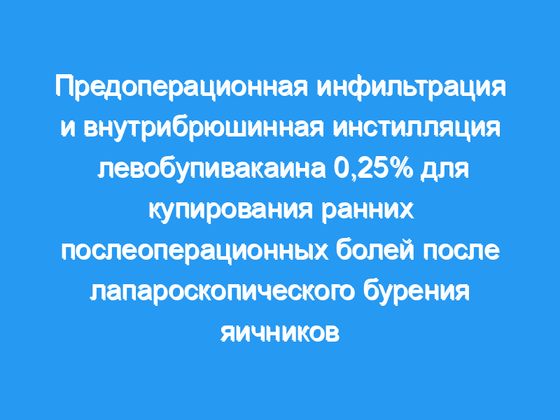 Оценить эффективность комбинированной предоперационной локальной инфильтрации (в местах расположения троакаров) и внутрибрюшинной инстилляции левобупивакаина 0,25% для купирования ранних послеоперационных болей после лапароскопического бурения яичников.