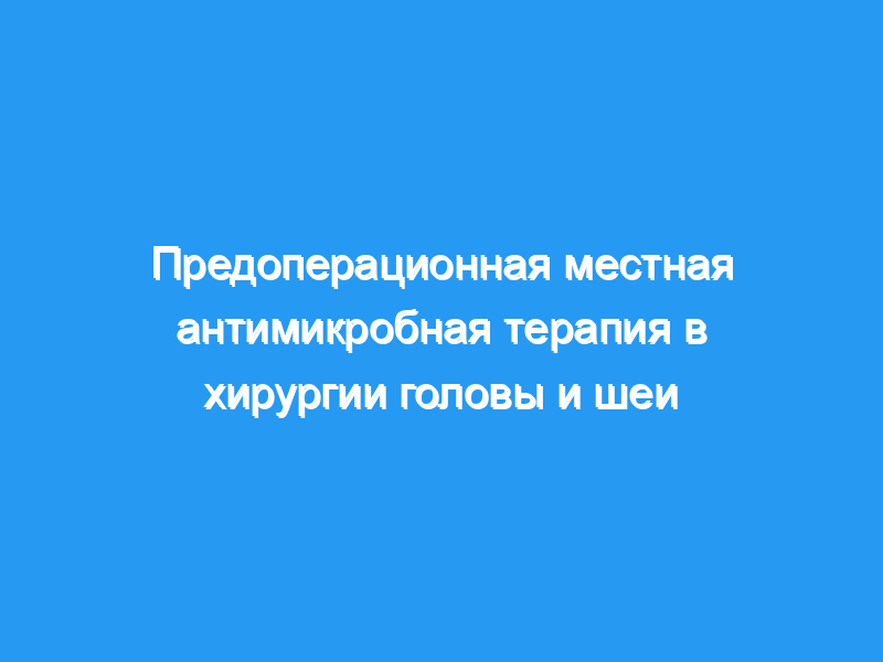 Цели/гипотеза: Инфекции в месте операции (SSIS) являются важной причиной заболеваемости и смертности после операций на голове и шее. Нашей основной целью было определить эффективность предоперационной местной антимикробной терапии перед операцией на голове и шее. Дизайн исследования: Проспективное рандомизированное контролируемое исследование.