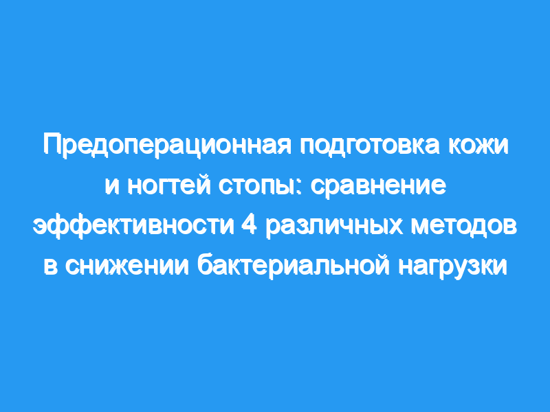 Ортопедические хирургические процедуры, затрагивающие стопу и лодыжку, связаны с высоким уровнем инфицирования. Оптимальный метод подготовки кожи и ногтей к операции на стопе и лодыжке остается неизвестным.