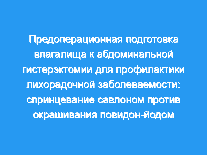 Сравнить эффективность спринцевания раствором савлона и окрашивания раствором повидон-йода для снижения фебрильной заболеваемости после тотальной абдоминальной гистерэктомии. Дизайн исследования: Клиническое испытание. Материал и метод: Ста пятидесяти пациентам в больнице Шринагаринд была запланирована тотальная абдоминальная гистерэктомия (ТАГ). Все испытуемые были распределены неслучайно для получения либо спринцевания савлоном (1:1000 растворов), либо окрашивания повидон-йодом (1% раствор) в качестве предоперационных вагинальных препаратов. Они также получали цефазолин по 1 г внутривенно перед операцией. Основным результатом исследования была лихорадочная заболеваемость.