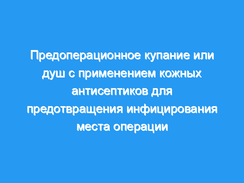 Инфекции в месте хирургического вмешательства (SSIS) — это раневые инфекции, возникающие после инвазивных (хирургических) процедур. Предоперационное купание или душ с антисептическим средством для мытья кожи — это общепринятая процедура для уменьшения количества кожных бактерий (микрофлоры). Менее ясно, приводит ли уменьшение микрофлоры кожи к снижению частоты инфицирования места операции.
