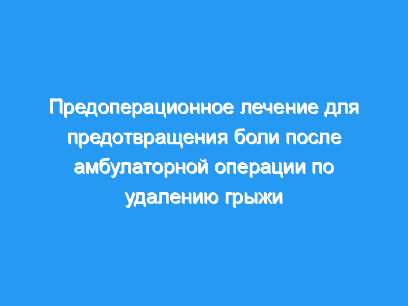 Мы пришли к выводу, что тройная предоперационная терапия уменьшает боль и использование анальгетиков после амбулаторного удаления грыжи, и призываем к дальнейшей оценке этой методики.