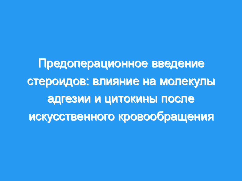 Сердечно-легочное шунтирование (CPB) связано с повреждением тканей, опосредованным молекулами адгезии и цитокинами. Введение стероидов Prebypass может модулировать воспалительную реакцию, что приводит к улучшению послеоперационного восстановления.