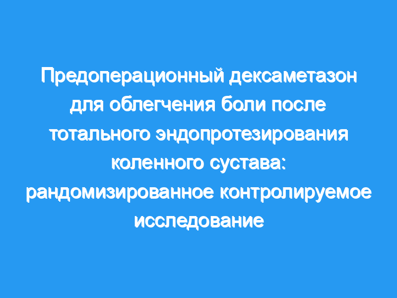 Дексаметазон в дозе 16 мг, введенный перед тотальным эндопротезированием коленного сустава, привел к уменьшению послеоперационной боли, уменьшению потребления опиоидов, усилению силы четырехглавой мышцы, лучшей мобилизации и улучшению общего качества восстановления после операции. Не было обнаружено долгосрочного улучшения в уменьшении боли и функции колена. Пробная регистрация: ClinicalTrials.gov идентификатор: NCT02767882.