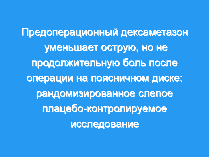 Мы исследовали предоперационный дексаметазон в сочетании с парацетамолом и ибупрофеном при острой и стойкой боли после массажер поясничного диска.