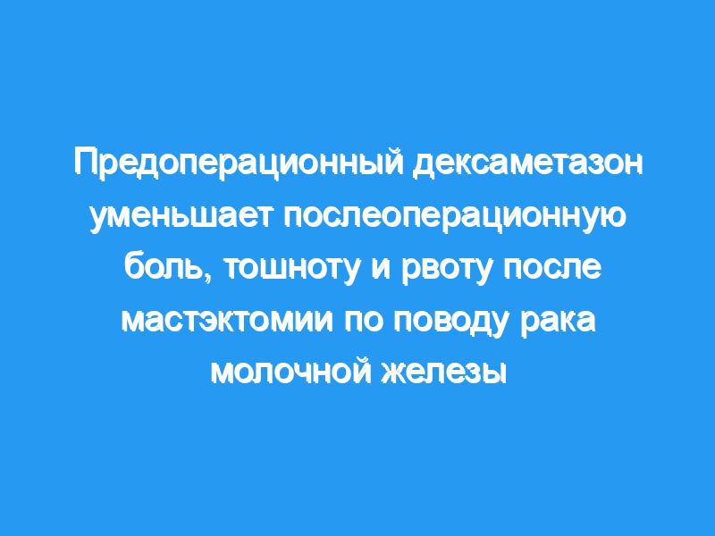 Сообщалось, что дексаметазон уменьшает послеоперационные симптомы после различных хирургических вмешательств. Мы оценили эффективность предоперационного дексаметазона в уменьшении послеоперационной тошноты и рвоты (PONV) и боли после мастэктомии.
