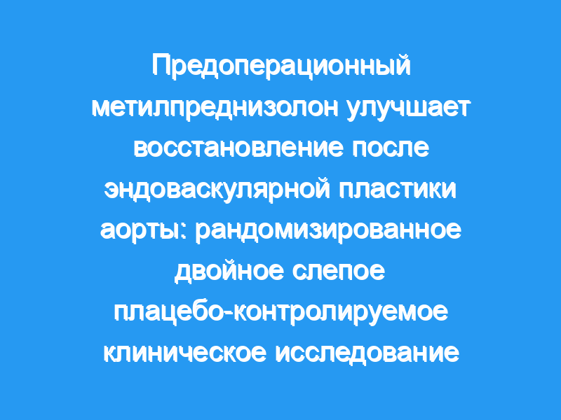 Одноцентровое рандомизированное двойное слепое плацебо-контролируемое исследование с участием 153 пациентов, проходивших плановую EVAR в период с ноября 2009 по январь 2013 года. Пациенты получали 30 мг/кг метилпреднизолона (МП) (n = 77) или плацебо (n = 76) перед операцией. Первичным исходом была модифицированная версия синдрома системного воспалительного ответа. Вторичными показателями исхода были влияние на биомаркеры воспаления, заболеваемость и время до выполнения критериев выписки.
