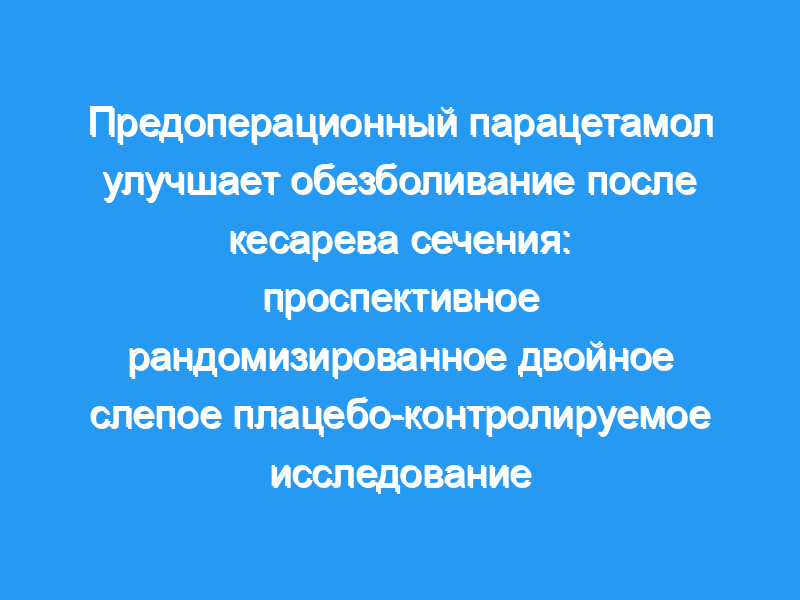 Оценить обезболивающий эффект предоперационного однократного внутривенного введения парацетамола на послеоперационную боль и потребление анальгетика в течение 24 часов после планового кесарева сечения. Дизайн: Проспективное рандомизированное двойное слепое плацебо-контролируемое клиническое исследование.