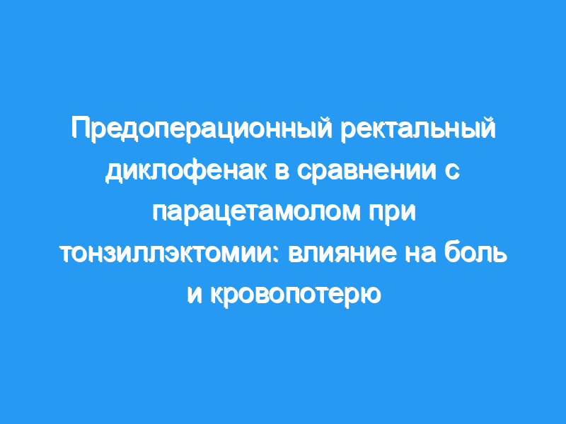 Предоперационный ректальный диклофенак не дает преимуществ перед парацетамолом в отношении послеоперационной анальгезии у пациентов, перенесших тонзиллэктомию, но увеличивает интраоперационную кровопотерю.