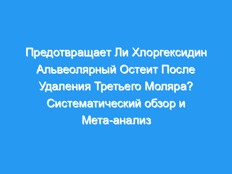 Профилактика альвеолярного остеита (АО) при удалении зубов остается спорным вопросом. Хлоргексидин является одним из наиболее широко изученных антисептиков для профилактики АО. Целью этого систематического обзора и мета-анализа была оценка эффективности и действенности хлоргексидина в профилактике АО после удаления третьего моляра.