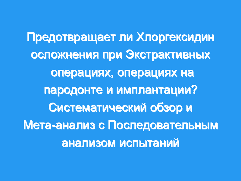 Целью этого систематического обзора была оценка влияния хлоргексидина (CHX) на предотвращение осложнений после экстрактивных, имплантологических и пародонтальных операций.