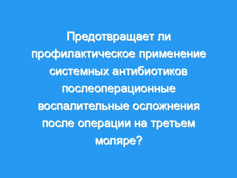 Оценить и сравнить частоту воспалительных осложнений после операции на третьем моляре (М3) у пациентов, получавших внутривенные профилактические антибиотики или плацебо с физиологическим раствором.