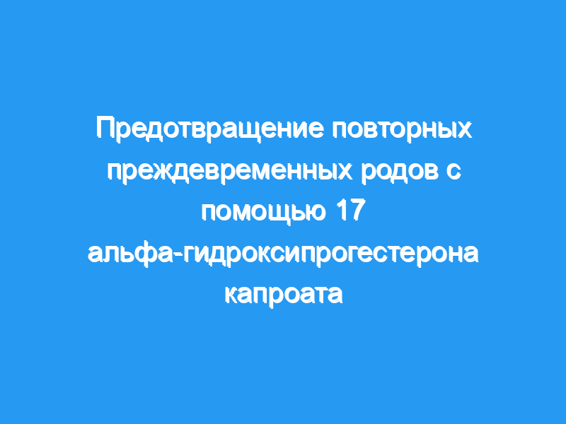 Женщины, у которых были спонтанные преждевременные роды, подвергаются значительно повышенному риску преждевременных родов при последующих беременностях. Результаты нескольких небольших исследований показали, что 17 альфа-гидроксипрогестерона капроат (17Р) может снизить риск преждевременных родов.