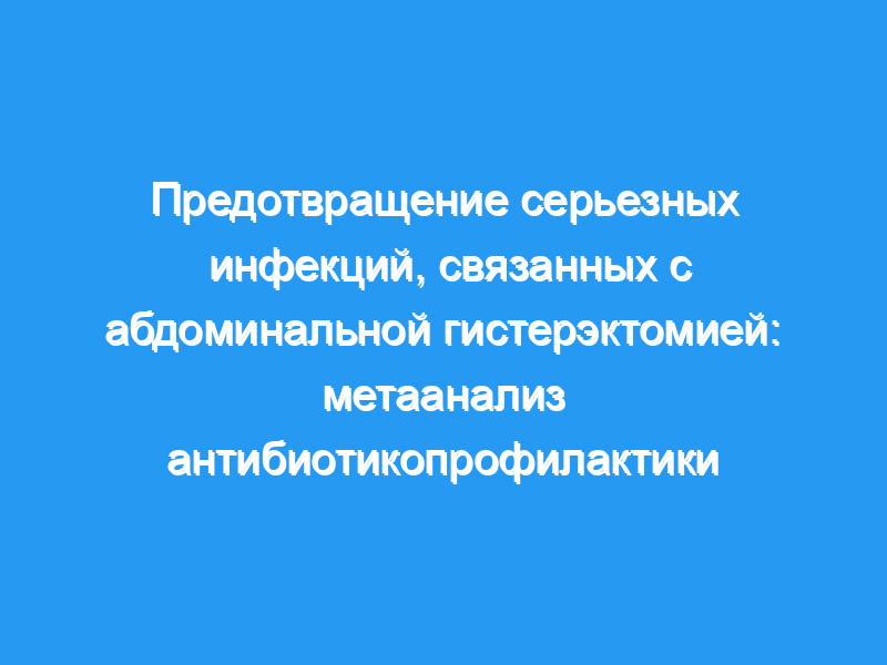 Наша цель состояла в том, чтобы определить, предотвращает ли применение предоперационных антибиотиков серьезные инфекции, связанные с тотальной абдоминальной гистерэктомией. План исследования: Мы определили 25 рандомизированных контролируемых исследований антибиотикопрофилактики, в которых использовались строгие протоколы. Мы провели мета-анализ и кумулятивный мета-анализ для всех исследований, а затем провели отдельный мета-анализ для цефазолина, метронидазола и тинидазола.