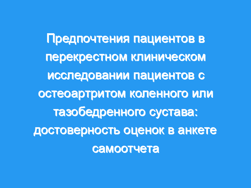 Проанализировать корреляционную достоверность ответов самоотчета относительно предпочтения пациента между 2 препаратами по завершении перекрестного двойного слепого клинического исследования у пациентов с остеоартритом (ОА) коленного или тазобедренного сустава.