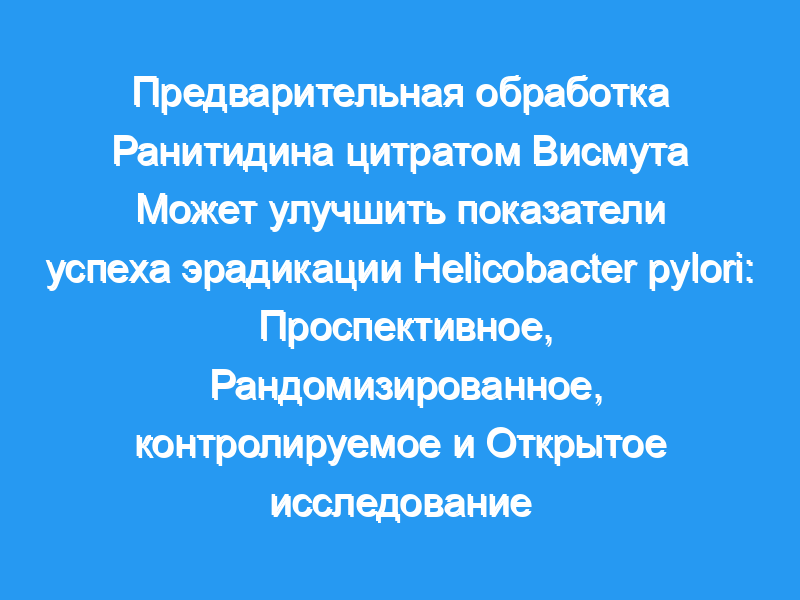 Мы стремились изучить эффективность и переносимость предварительной обработки ранитидином висмута цитратом (RBC) перед стандартной тройной терапией H. эрадикация пилори.