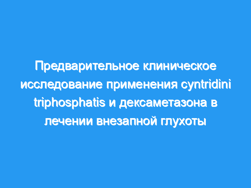 Изучить влияние применения цитридини трифосфатиса (CTP) в сочетании с дексаметазоном на внезапную глухоту. Двести семь пациентов (312 ушей) с внезапной глухотой были случайным образом разделены на группу CTP (n = 159 ушей) и контрольную группу (n = 153 ушей). Помимо внутривенного введения CTP, другие методы лечения в группе CTP были такими же, как и в контрольной группе, включая гипербарический кислород, сосудорасширяющие средства, энергетические препараты, такие как АТФ, КоА и дексаметазон (DXM).