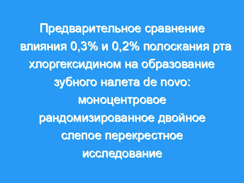 Двадцать добровольцев были включены в рандомизированное двойное слепое перекрестное исследование, в котором сравнивалась эффективность CHX 0,3% и CHX 0,2% ополаскивателей для рта, применяемых в течение 15 и 30 секунд соответственно. Индекс зубного налета (PII), общее количество бактерий и обнаружение специфических периопатогенов измеряли на 5-й день каждого применения полоскания рта. Восприятие вкуса оценивалось с помощью вопросника.