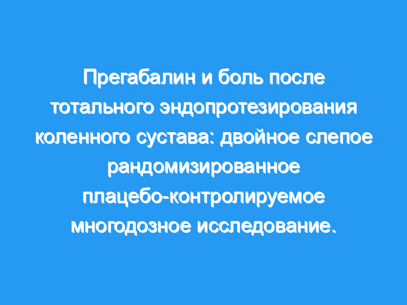 Прегабалин не оказывал никакого положительного эффекта, но усиливал седативный эффект и снижал удовлетворенность пациентов. Это исследование не поддерживает рутинный периоперационный прием прегабалина пациентам с тотальным эндопротезированием коленного сустава. Регистрация клинических испытаний: ClinicalTrials.gov : http://www.clinicaltrials.gov/ct2/show/study/NCT01333956 .