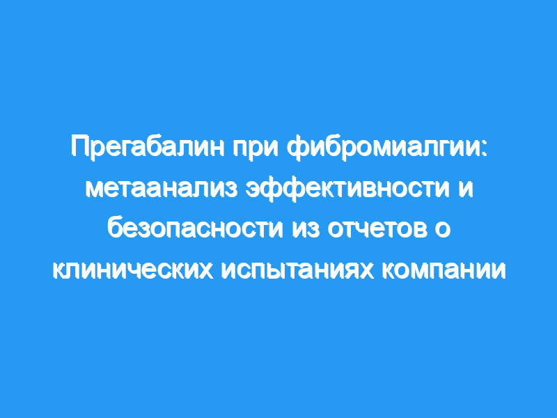 Метаанализ испытаний прегабалина в FM с использованием отчетов об испытаниях компании, которые содержат более подробную информацию об испытаниях, чем опубликованные статьи. FM — это распространенное заболевание, оказывающее значительное влияние на качество жизни.