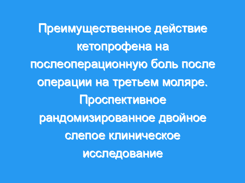 Авторы исследовали, обеспечивает ли кетопрофен, введенный за 60 мин до хирургического удаления нижних зубов мудрости, эффективную послеоперационную анальгезию и снижает потребление спасательных анальгетиков по сравнению с кетопрофеном, введенным через 60 мин после операции или плацебо.