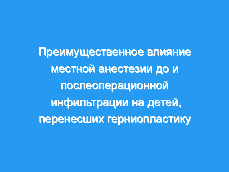 Периоперационная инфильтрация местным анестетиком у детей, перенесших герниопластику, приводит к плавному выздоровлению с небольшой потребностью в опиоидах после операции. Помимо снижения потребности в анестезии и снижения уровня послеоперационной боли через 30 мин в группе, получавшей бупивакаин до операции, не было никакой разницы между инфильтрацией до (превентивной) или после операции.