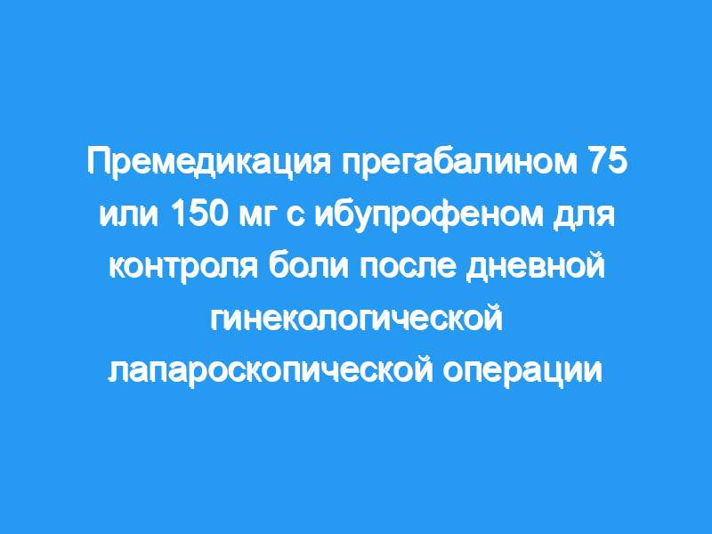 Обезболивание было лучше после премедикации прегабалином в дозе 150 мг, чем после диазепама в дозе 5 мг, оба с ибупрофеном в дозе 800 мг, во время раннего восстановления после дневной гинекологической лапароскопической операции. Прегабалин в дозе 150 мг не уменьшал количество необходимых послеоперационных анальгетиков.