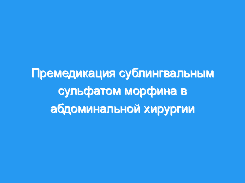 Целью данного исследования было изучение эффективности превентивной анальгезии сублингвальным сульфатом морфина по сравнению с сублингвальным мидазоламом у пациентов, перенесших плановую абдоминальную операцию.