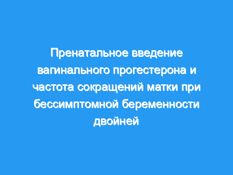 Предыдущее исследование показало, что прогестерон снижает среднюю частоту сокращений матки при одноплодной беременности с высоким риском преждевременных родов. Целью данного исследования было изучение влияния вагинального прогестерона на частоту сокращений матки при беременности двойней.