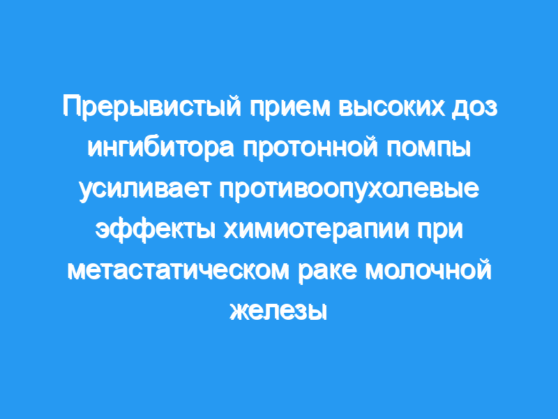 Кислотность является отличительным признаком злокачественной опухоли, представляя собой очень эффективный механизм химиорезистентности. Было показано, что ингибиторы протонной помпы (ИПП) в высоких дозах повышают чувствительность химиорезистентных опухолевых клеток человека и опухолей к цитотоксическим молекулам. Целью этого пилотного исследования было изучение эффективности ИПП в улучшении клинических результатов лечения доцетакселом + цисплатином у пациентов с метастатическим раком молочной железы (МБК).