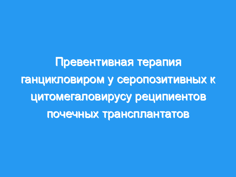 Превентивная терапия ганцикловиром значительно снизила риск развития ЦМВ-инфекции. частота ЦМВ-инфекции (P <, 0,05) у ЦМВ-серопозитивных пациентов с трансплантацией почки, которые получали лечение АЛК и хорошо переносили его. Кроме того, стоимость профилактической терапии была компенсирована сокращением продолжительности госпитализации, наблюдавшимся у пациентов в группе 1.