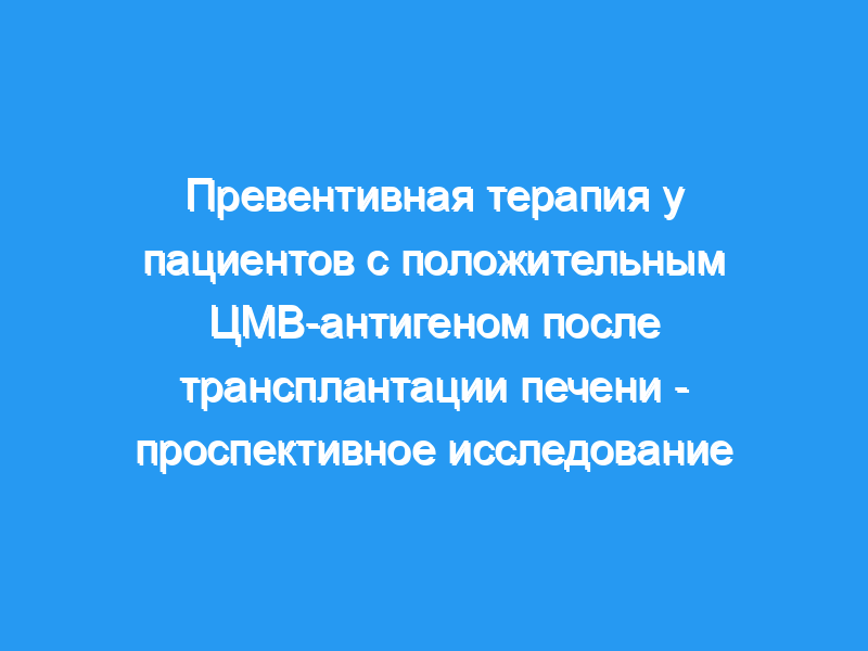 В открытом проспективном исследовании сравнивали превентивную терапию внутривенным введением ганцикловира и ЦМВ-гипериммуноглобулина у бессимптомных пациентов с ЦМВ pp65-положительным антигеном с лечением только симптоматического ЦМВ-заболевания после трансплантации печени. Пациенты и методы: 48 из 200 реципиентов трансплантата печени дали положительный результат в течение шести недель наблюдения после трансплантации. 17 из этих 48 пациентов, у которых уже были симптомы на момент положительного тестирования на антиген, были успешно пролечены ганцикловиром и ЦМВ-гипериммуноглобулином. 31 бессимптомный антиген-положительный пациент был рандомизирован для получения превентивной терапии или для получения терапии только при появлении клинических симптомов.