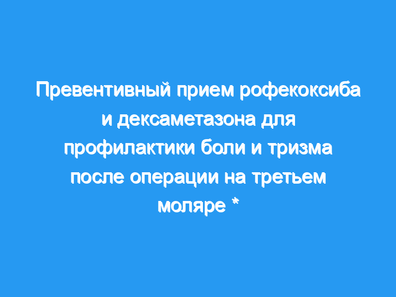 Комбинация предоперационного рофекоксиба в дозе 50 мг и интраоперационного дексаметазона в дозе 10 мг была наиболее эффективной в минимизации боли и тризма после операции на третьем моляре..