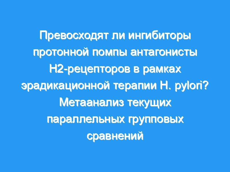 Поэтому этот Целью мета-анализа была оценка доступных исследований по эрадикации в параллельных группах с ингибиторами протонной помпы и антагонистами Н2-рецепторов, а также сравнение показателей эрадикации H. pylori для обоих классов кислотоснижающих препаратов.