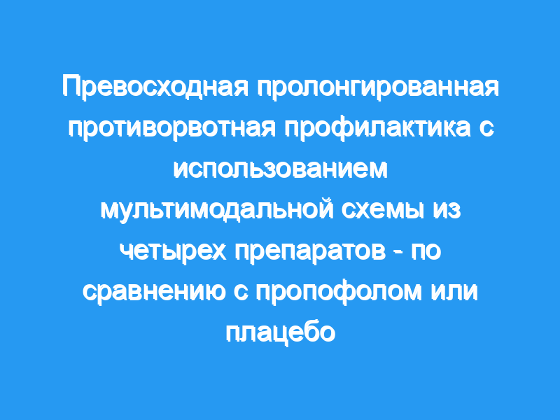 Целью этого исследования было сравнить эффекты инфузии пропофола в низких дозах с мультимодальным режимом приема четырех препаратов для профилактики послеоперационной тошноты и рвоты (PONV).