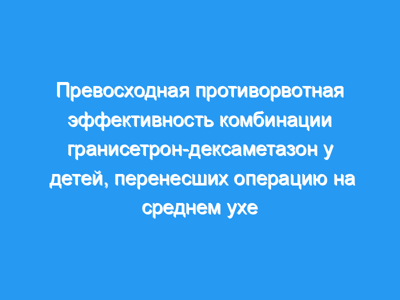 Профилактическая комбинация гранисетрон-дексаметазон была более эффективной, чем один гранисетрон, в предотвращении послеоперационной рвоты в течение первых 24 ч после анестезии у детей, перенесших операцию на среднем ухе.
