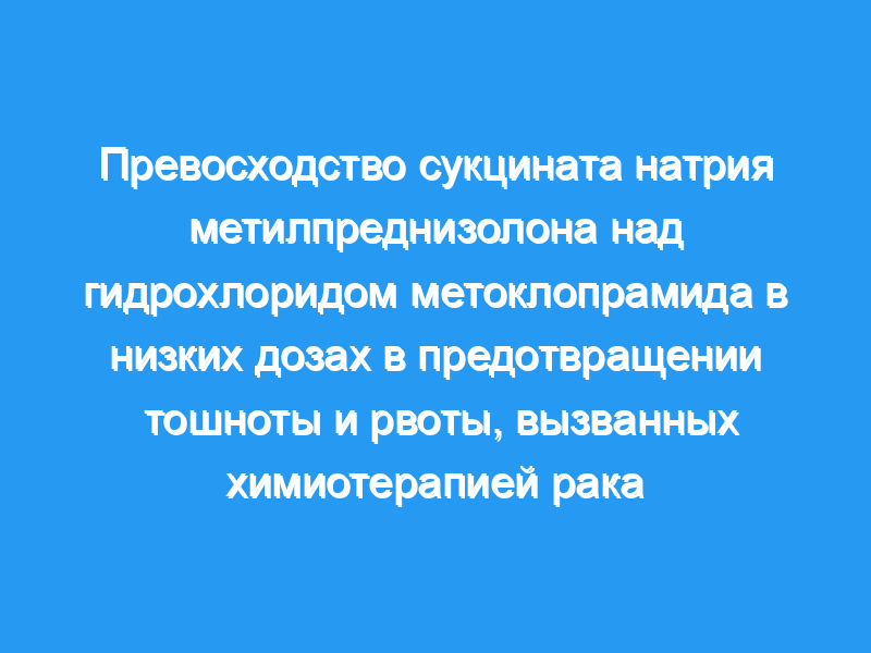 Сукцинат натрия метилпреднизолона и метоклопрамид сравнивались по их эффективности, переносимости и безопасности в профилактике тошноты и рвоты, вызванных умеренно эметогенной химиотерапией у пациентов с cance.