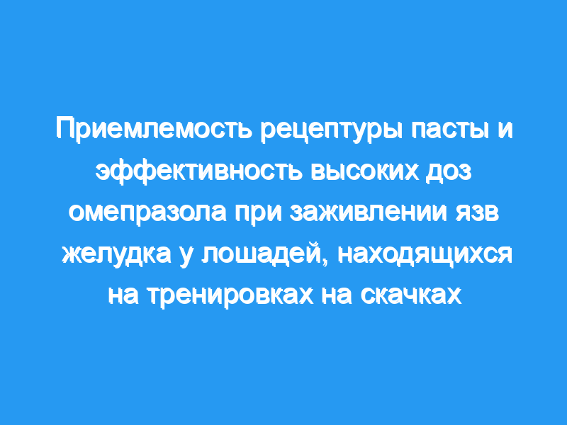 Те лошади, у которых не было изъязвлений на 27-31-й день, были повторно обследованы на 35-49-й день. Переносимость пасты, как с активным омепразолом, так и без него, была признана превосходной у всех лошадей, за исключением одного случая, когда одна лошадь проглотила пасту после первоначального легкого отвращения.
