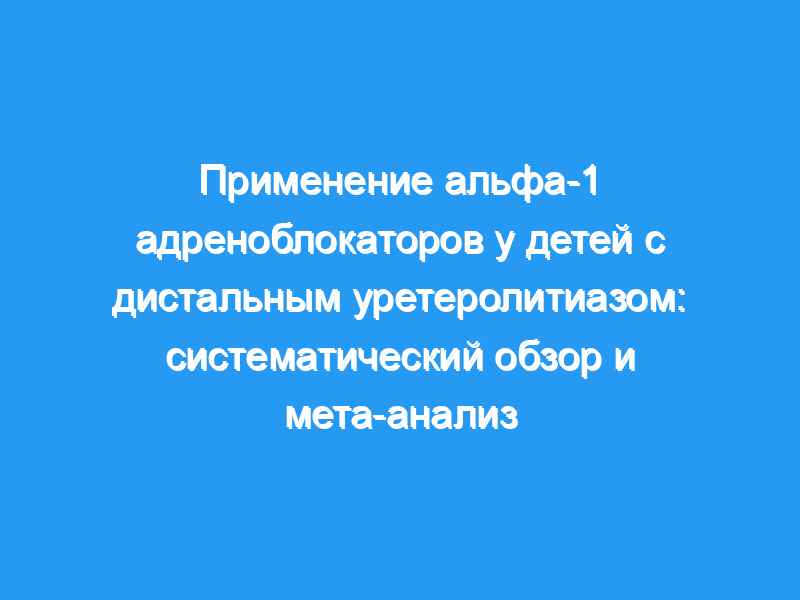 Целью данного обзора является оценка использования альфа-1-адреноблокаторов в качестве медикаментозного вытесняющего лечения у детей с дистальным уретеролитиазом. Сбор доказательств: Был проведен электронный поиск литературы с использованием баз данных MEDLINE, COCHRANE и LILACS. Далее мы вручную провели поиск ссылок на первичные исследования. Обыски были завершены 4 октября 2014 года. Статьи отбирались независимо и попарно по соответствующим названиям и резюме. Любые разногласия разрешались консенсусом. Синтез доказательств: Антагонисты альфа-1 адренорецепторов увеличивали вероятность изгнания камней на 27% (NNT=4). Камни размером менее 5 мм увеличились на 33% (NNT=3). Больше 5 мм, увеличено на 34% (NNT=3).