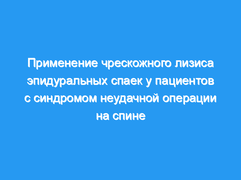 Чрескожное лизирование эпидуральных спаек с использованием жесткой направляющей проволоки и сосудистого катетера 4F является эффективным методом лечения FBSS и имеет ценность в клиническом применении.