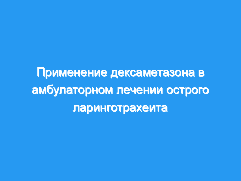 Недавние исследования показали, что однократная внутримышечная инъекция дексаметазона (0,6 мг/кг) сокращает продолжительность и тяжесть заболевания у госпитализированных пациентов с острым вирусным ларинготрахеитом (крупом). Наша цель состояла в том, чтобы определить, играет ли дексаметазон роль в амбулаторном лечении пациентов с острым вирусным крупом средней тяжести.