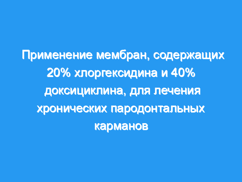 Было проведено исследование для сравнения эффектов поддесневых аппликаций рассасывающихся гидроксипропилметилцеллюлозных (HPMC) мембран, содержащих 20% хлоргексидина (CHx) и 40% доксициклина (DOXY), размещенных поддеснево в пародонтальных карманах более 5 мм в отделе.