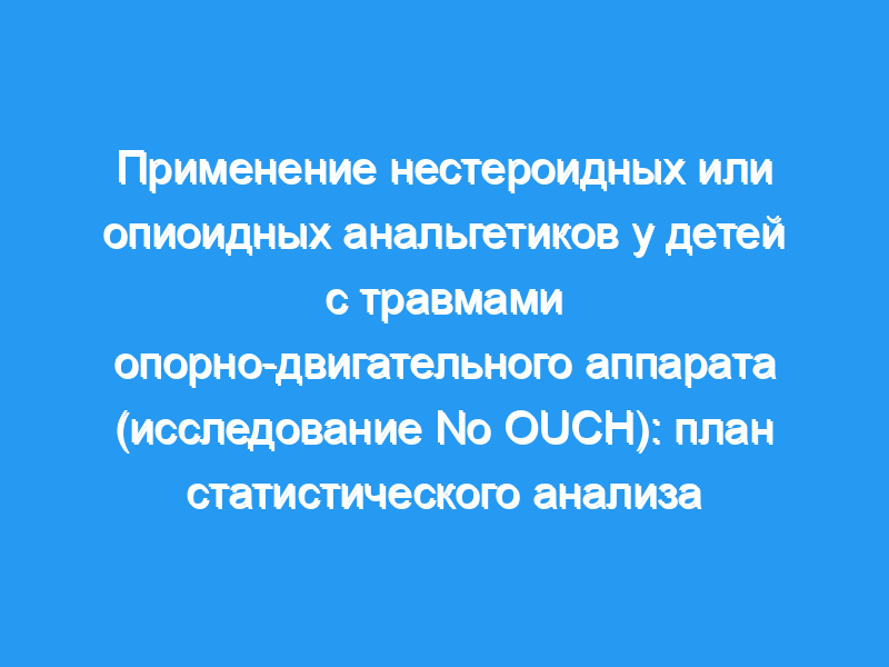 Травмы опорно-двигательного аппарата у детей вызывают умеренную или сильную боль, которую в идеале следует лечить по прибытии в отделение неотложной помощи (ED). Несмотря на обширные исследования в области лечения боли у детей на основе ЭД, недавние исследования подтверждают, что обезболивание в этих условиях остается неоптимальным. Исследование No OUCH состоит из двух взаимодополняющих рандомизированных плацебо-контролируемых исследований, которые будут проводиться одновременно для пациентов, обратившихся в ED с острой травмой конечности и самооценкой боли не менее 5/10, измеряемой с помощью вербальной числовой шкалы оценки (vNRS). Выбор опекуна/родителя определит, будут ли пациенты рандомизированы для участия в исследовании с двумя или тремя группами. В исследовании с двумя группами пациенты будут рандомизированы для получения либо одного ибупрофена, либо ибупрофена в комбинации с ацетаминофеном. В исследовании с тремя группами пациенты также могут быть рандомизированы в третью группу, где они будут получать ибупрофен в комбинации с гидроморфоном. Эта статья подробно описывает план статистического анализа для исследования No OUCH и была представлена до того, как результаты исследования были доступны для анализа. Методы/дизайн: Первичной конечной точкой исследования No OUCH является самооценка боли через 60 мин, записанная с помощью vNRS. Основным результатом безопасности является наличие любого нежелательного явления, связанного с приемом исследуемого препарата. Вторичные конечные точки эффективности включают измерения боли с использованием пересмотренной шкалы боли Faces и визуальной аналоговой шкалы, время до эффективной анальгезии, потребность в спасательном анальгетике, пропущенные переломы и наблюдаемое уменьшение боли с использованием различных определений успешной анальгезии. Вторичные показатели безопасности включают седативный эффект, измеряемый с использованием шкалы седации Рамзи, и серьезные побочные эффекты. Наконец, в исследовании No OUCH исследуются причины, приведенные лицом, осуществляющим уход, для выбора двухрукого (неопиоидного) или трехрукого (опиоидного) исследования, удовлетворенность лица, осуществляющего уход, предпочтения врача в отношении анальгетиков и комфорт лица, осуществляющего уход, при лечении боли на дому.