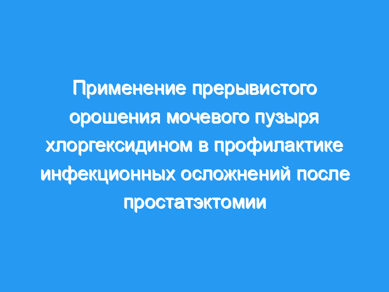 Эффективность периоперационного прерывистого орошения мочевого пузыря 0,05% раствором хлоргексидина глюконата в профилактике инфекционных осложнений после простатэктомии была оценена у мужчин с предоперационным постоянным мочевым катетером.Тридцать два последовательных пациента, перенесших трансвезикальную простатэктомию, были случайным образом распределены на тестовую группу (орошение хлоргексидином) и контрольную группу (орошение физиологическим раствором). Перед операцией прерывистое орошение мочевого пузыря хлоргексидином привело к стерильности мочи только у 3 из 13 пациентов, у остальных бактериурия сохранялась.