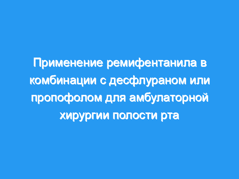 Мы оценили использование ремифентанила, вводимого в качестве компонента ингаляционной или целевой контролируемой инфузионной анестезии (TCI), во время амбулаторной операции на полости рта.