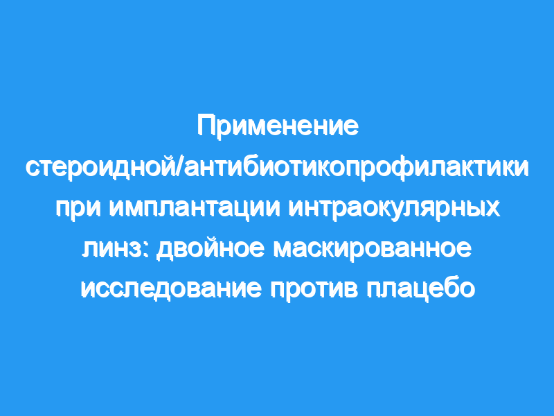 Было проведено проспективное рандомизированное исследование с двойной маскировкой для сравнения эффективности лечения стероидами/антибиотиками и плацебо в снижении послеоперационного воспаления глаз.