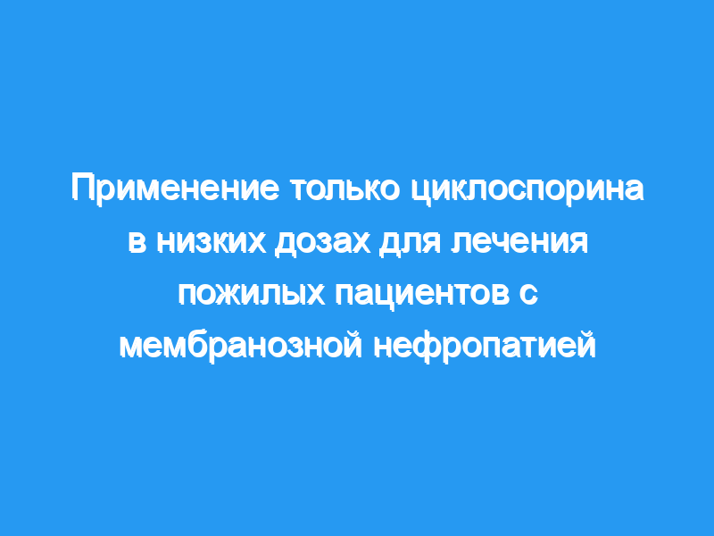 Целью данного исследования было изучение эффектов применения низких доз циклоспорина А (CsA) отдельно и комбинации низких доз CsA и низких доз гормона для лечения пожилых пациентов с мембранозной нефропатией.